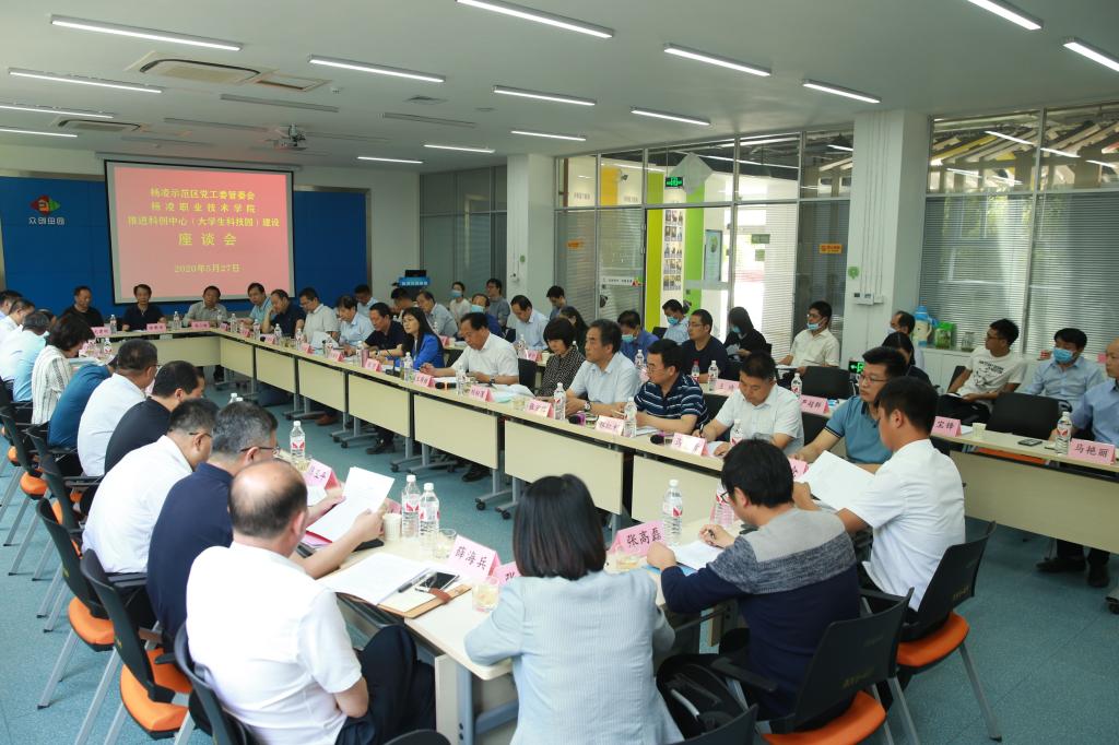 座谈中,示范区科技创新局负责人介绍了示范区科创工作整体情况,我院副院长祝战斌汇报了学院建设有关情况。我院党委副书记、纪委书记刘粉莲,党委委员、发展规划处处长张宏辉,水利工程分院院长郝红科,动物工程分院副院长张振仓,生物工程分院教师马文哲教授进行了讨论发言。