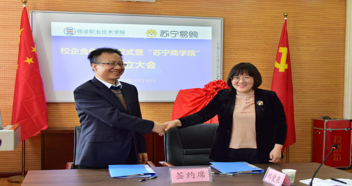 杨宏祥与杨花代表校企双方签订《苏宁商学院合作协议书》