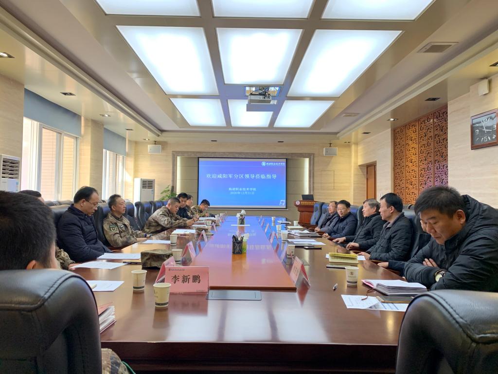 12月21日上午,咸阳军分区国防动员处处长欧元军一行来我校调研指导大学生征兵工作,我校副校长祝战斌,党委委员、教务处处长拜存有、人武部部长周宁、财务处处长邹剑、招就处处长袁军儒、学生处副处长邓留坤参加调研座谈。