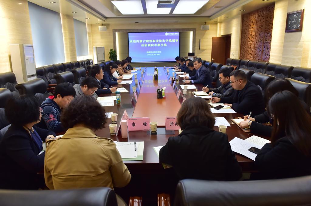 3月29日,内蒙古建筑职业技术学院副校长银花一行11人来我校参观交流。副校长张迪,党委委员、发展规划处处长张宏辉,党委委员、教务处处长拜存有等参加座谈会。