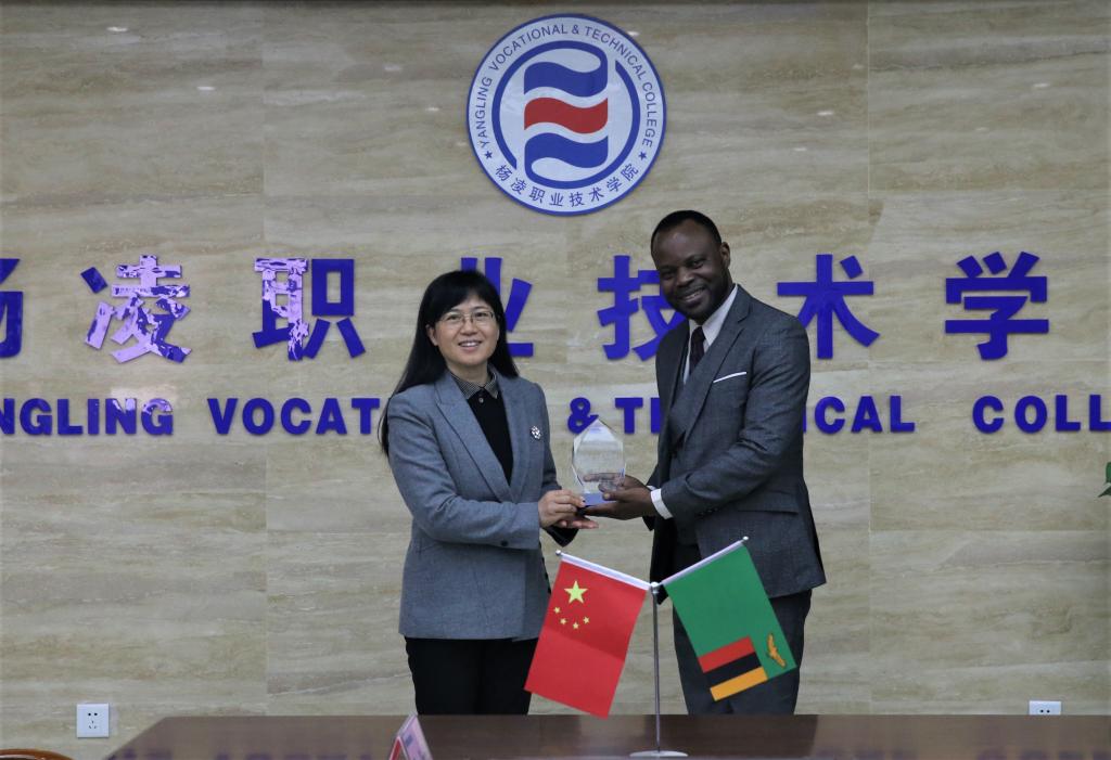 杰弗里•班达在发言中,首先对我校的热情接待表示感谢。他说,中国和赞比亚是第一个与中国建交的非洲国家,两国有着深厚的传统友谊。赞比亚目前主要的收入来源是铜,政府希望将来能大力发展农业,推动多样化经济发展,赞比亚有60%的人口是需要接受职业技能培训的年轻人,因此需要加大对农业职业技能的培训、农业高科技设备的投资,来确保粮食安全和经济多样化发展。希望通过此次访问,能促进赞比亚和杨凌职业技术学院在农业技术指导交流、职业技能课程培训、留学生培养、共建杨凌职院海外分校等方面广泛开展合作。