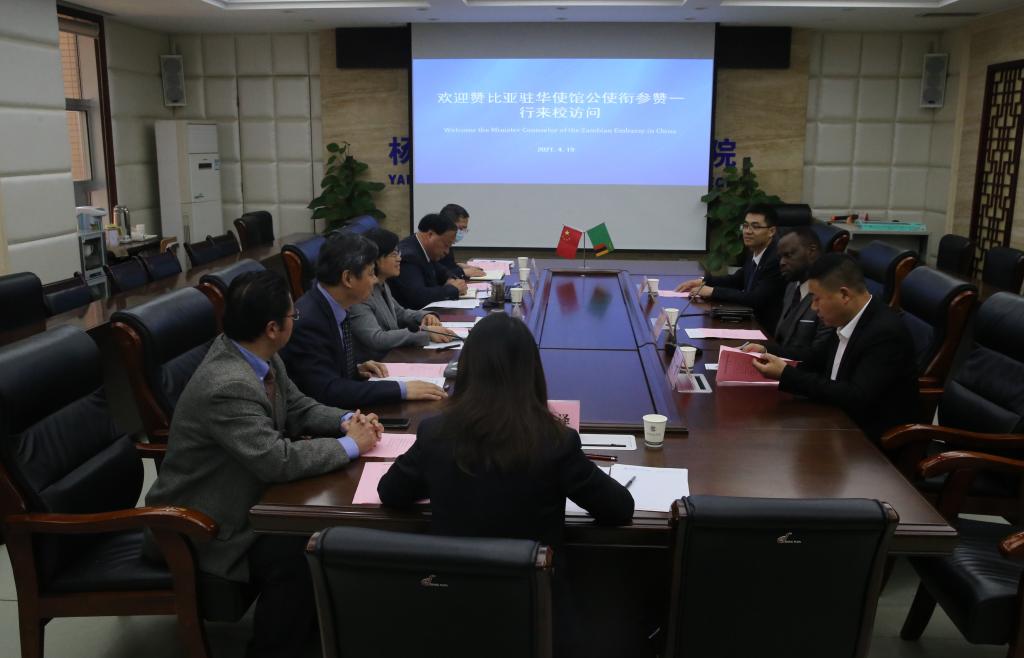 4月19日上午,赞比亚共和国驻华使馆公使衔参赞、副馆长杰弗里•班达一行来访我校,并就国际合作交流工作进行了座谈。校党委书记陈宁、校长王周锁在南校区醒钟楼204会议室接待了杰弗里•班达一行。陕西省人民对外友好协会理事、赞比亚大学一带一路联合研究中心中方主任、赞比亚“一带一路”科技学院董事长刘昭,陕西省友协常务理事会四级调研员万鑫陪同访问,学校副校长张迪、党政办公室主任张朝晖、国际合作交流处处长(国际学院院长)杜斌、国际合作交流处副处长(国际学院副院长)杨雪霁参加了座谈会。座谈会由副校长张迪主持。