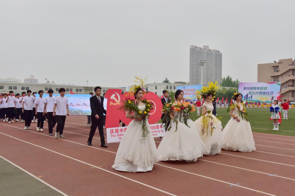 今年是中国共产党成立100周年,由体育课教学部组织编排、600名学生表演的大型团体操“风雨百年”,表达了全校师生对党和祖国的热爱。团体操分为感谢有你、风雨百年、党旗颂三个篇章,600名学生踏着音乐节拍,组合出1921-2021、党旗等造型,赢得现场掌声、欢呼声不断。
