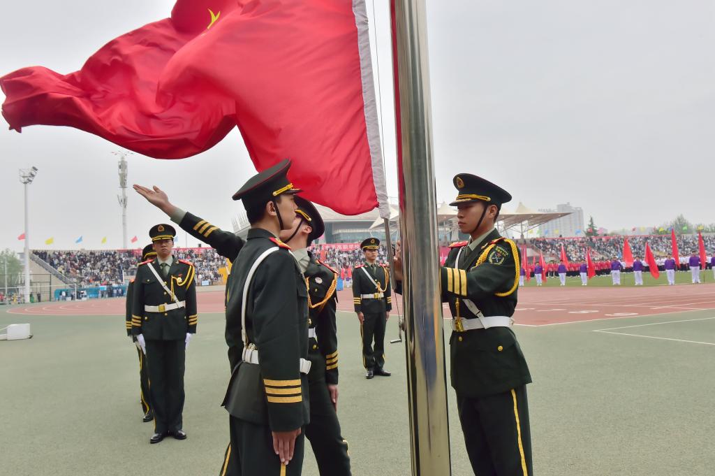 校长王周锁宣布2021年春季田径运动会运动会开幕