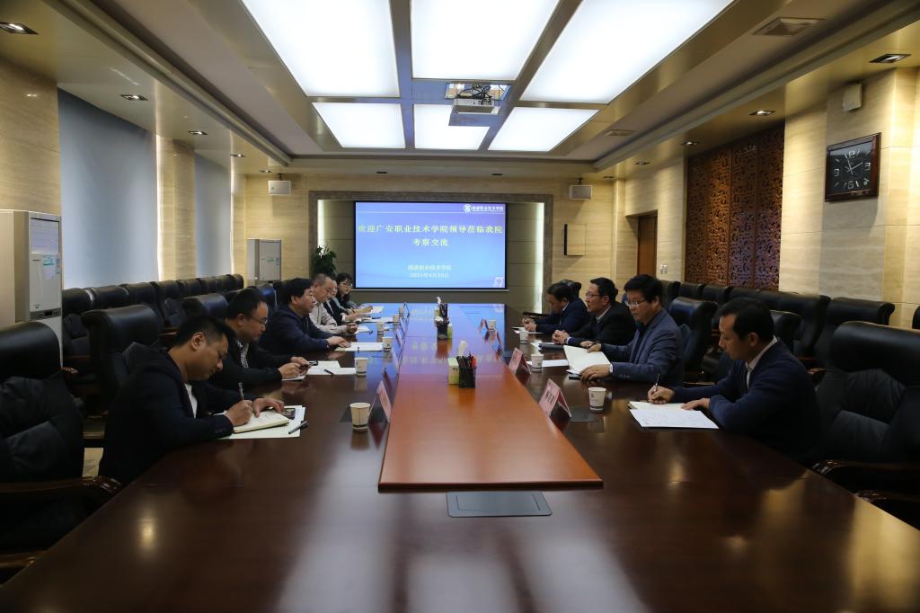 座谈会上,任得元介绍了我校的整体情况和近期开展的重点工作。张晓峰介绍了广安职业技术学院的基本情况,并通过观看宣传片,了解了我校的办学历史、基本概况和办学成就。随后,双方围绕学校“十四五”发展规划、“双高”建设、高层次人才引进与培养、党建及干部工作、宣传思想工作等内容进行了深入交流。