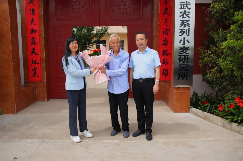 眼下正值小麦成熟期,武农系列小麦研究所里,“武农981”、“武农988”等品种长势喜人,一片丰收在望的景象。在赵瑜的带领下,陈宁一行走进田间地头,参观了武农系列小麦品种,了解了大穗大粒超高产小麦品种“武农981”、“武农988”的繁殖、试种和表现情况。她表示,为了加强赵瑜旱区作物(小麦)育种工程中心团队建设,学校将引进相关专业的博士,希望赵瑜老师发挥余热,为团队建设贡献力量。