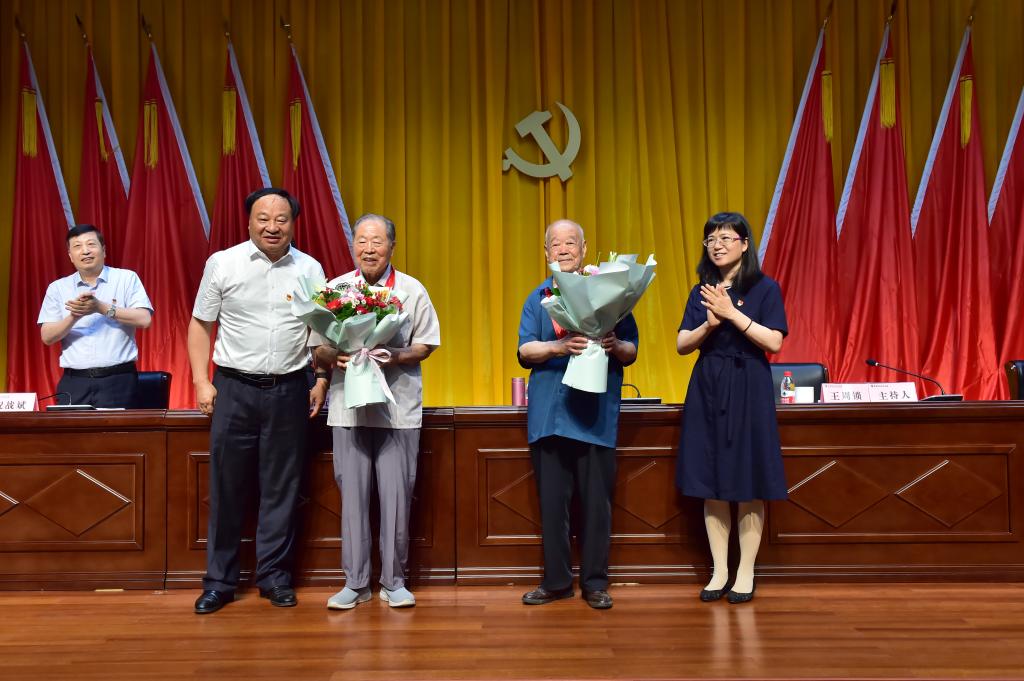会上,陈宁带领全体党员共同重温入党誓词。任得元宣读了学校党委《关于表彰“两优一先”和“担当作为好干部”“干事创业好班子”的决定》。陈宁、王周锁向老党员代表卢伟、李天葆颁发了“光荣在党50年”纪念章,学校领导向获奖的先进集体和个人代表颁奖。