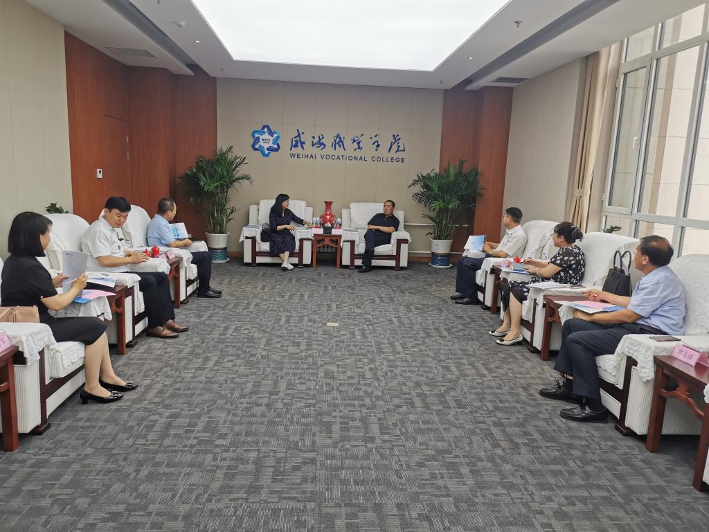 7月30日,陈宁一行在威海职业学院考察交流。威海职业学院党委书记吴永刚、副校长孙忠峰、国际学院院长孙爱娟在学校会见了陈宁一行,就该校上合组织国家职教联盟、上合组织国家职业技能邀请赛、模拟上合组织青年会议和中高本贯等通情况进行了介绍,并欢迎我校加入由威海职业学院牵头、正在酝酿成立的上合组织国家职业教育联盟,希望我校的加盟能够进一步推进双方国际合作工作的提升。