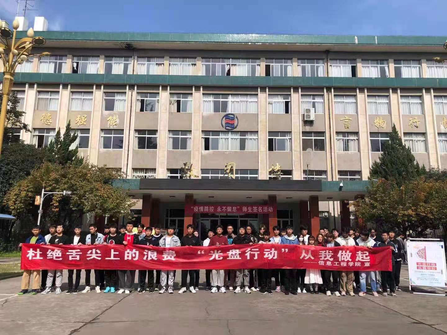 10月11日至21日,信息工程学院在南北两个校区开展“厉行节约 从我做起”主题实践活动。此次活动主要通过线上线下相结合的方式开展,线上主要通过微信朋友圈集赞、QQ群内光盘打卡等形式进行,线下主要通过召开主题班会、发放倡议书、组织承诺签名活动等形式进行。