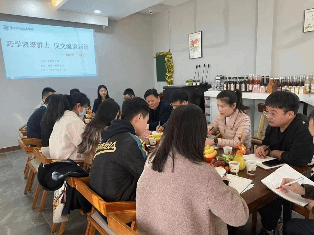 为进一步推动辅导员队伍职业化、专业化、专家化建设11月12日下午学校“跨学院聚群力 促交流谱新篇”辅导员工作交流会在北校区旅苑创咖召开。党委学工部长陈军峰,旅游与管理学院党总支副书记周广阔,以及15名辅导员代表参加会议。