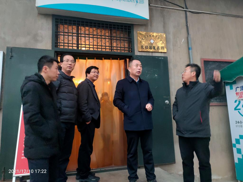 12月10日,副校长胡俊鹏,党委委员、组织部长田争运带队深入三校区学生公寓、食堂、校医院,对近期开展的出血热等呼吸道传染性疾病防控工作进行检查指导。党政办公室、后勤保障处、校医院和学生处公寓科相关负责人一同检查。