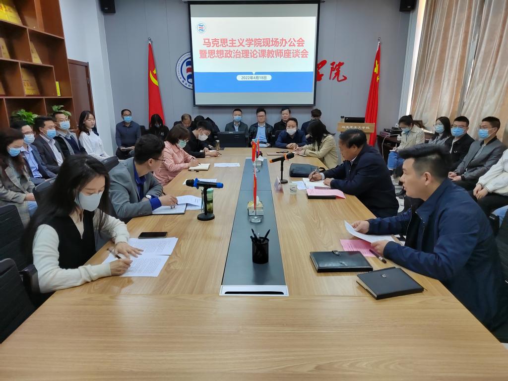 4月18日下午,校长王周锁深入马克思主义学院召开现场办公会暨思政课教师座谈会,对马克思主义学院建设作出部署和要求。马克思主义学院全体教师参加会议。