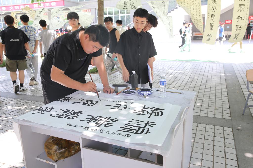 交通与测绘工程学院在南校区举行了“正禾”育人工程之“传承中华文明 品味粽香端午”主题活动。活动包括猜谜语送粽子、旱地龙舟、书画展示、画扇、端午心愿墙等。丰富的活动内容吸引了众多师生参加,现场气氛热烈活跃,大家在参与活动的过程中感悟传统佳节文化魅力,进一步增强了文化自信心和民族自豪感。