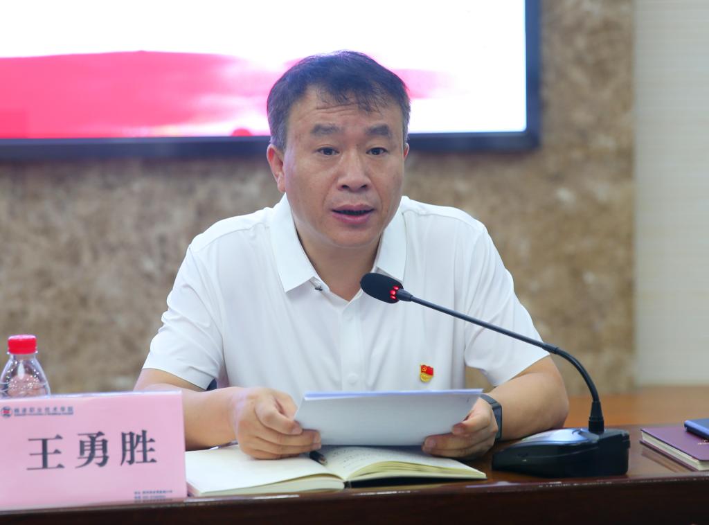 会上,全体党员起立,面对党旗庄严肃立,重温入党誓词。生态环境工程学院党总支书记孙承俊以“以党建引领双高建设,推动学院高质量发展”为题,从抓班子带队伍、抓党建促业务、抓创新育品牌、抓师德强师风、抓双创树标杆和抓乡村振兴建示范六方面,介绍了党建工作做法和取得成效。人事教师处副处长蒋霞以“深化改革、提升能力,建设新时代高素质教师队伍”为题,从以德为先、全面提升师德师风水平,引育并举、稳步提高教师队伍素质,创新驱动、有效提升教师职业认同感三方面,介绍了学校建设新时代高素质教师队伍的措施和成效,并汇报了下一步工作打算。