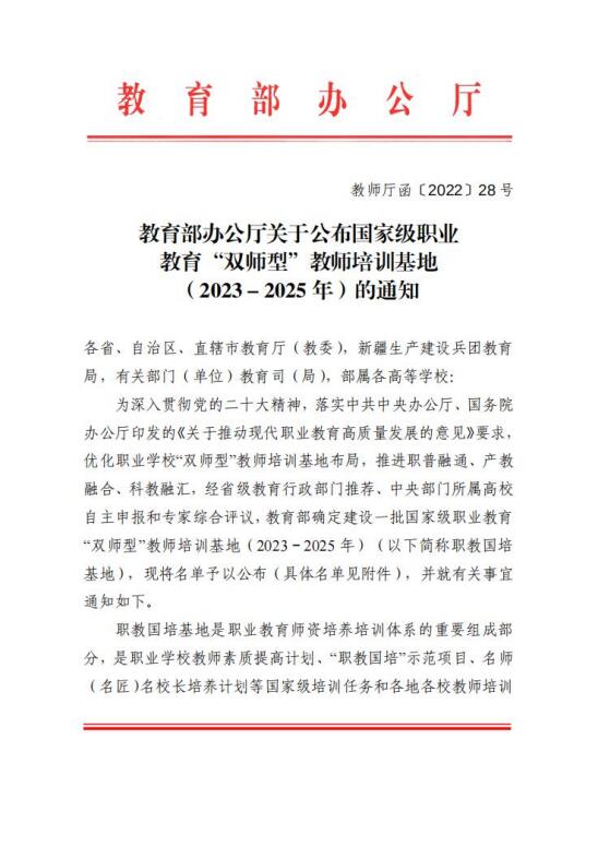 此次成功入选国家级职业教育“双师型”教师培训基地,学校新时代教师队伍建设的又一重大突破,充分彰显校高水平、高素质“双师型”教师队伍建设取得的显著成效。学校将以此为契机,以高层次技能型学生培养为重点,探索新时代职业教育发展道路,全力做好高水平、高素质“双师型”教师培训工作,努力打造现代职业教育新高地。