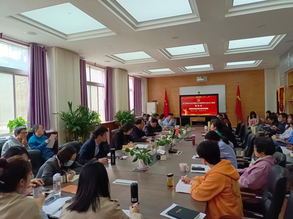 4月28日下午,党委书记王周锁为经济与贸易学院教职工作学习贯彻习近平新时代中国特色社会主义思想辅导报告。报告会由经贸学院党总支副书记蒋霞主持。