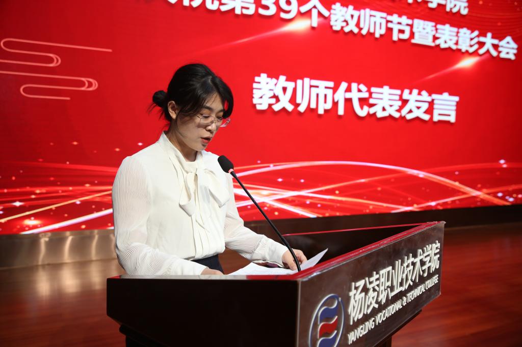 大会宣读了学校《关于颁发“光荣从教30年”纪念章及荣誉证书的决定》《关于对2021年以来成绩突出团队和个人表扬的决定》和《关于表彰2023年优秀教师优秀教育工作者的决定》,并为5名从教30年教师代表颁发了荣誉证书及纪念奖章,为优秀教师和优秀教育工作者代表颁发了荣誉证书。会上,优秀教师代表张宏、优秀教育工作者代表郭婷、成绩突出团队和个人代表李龙作了交流发言。