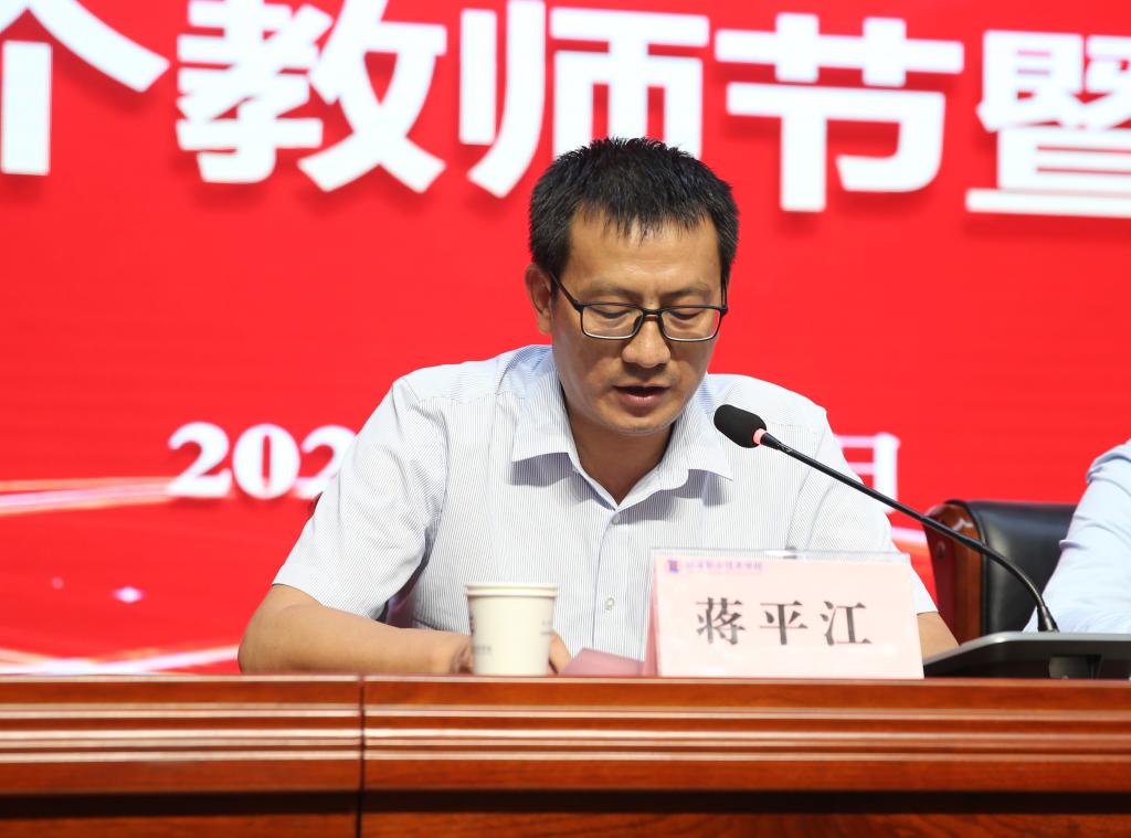 9月8日下午,学校庆祝第39个教师节暨表彰大会在南校区思辨堂举行。学校党委书记王周锁,党委副书记、纪委书记王勇胜,副校长蒋平江、胡俊鹏,受表彰教师代表,各二级学院教师代表,各二级学院(部)党总支书记、院长(主任),机关处室负责人参加了大会。大会由王勇胜主持。