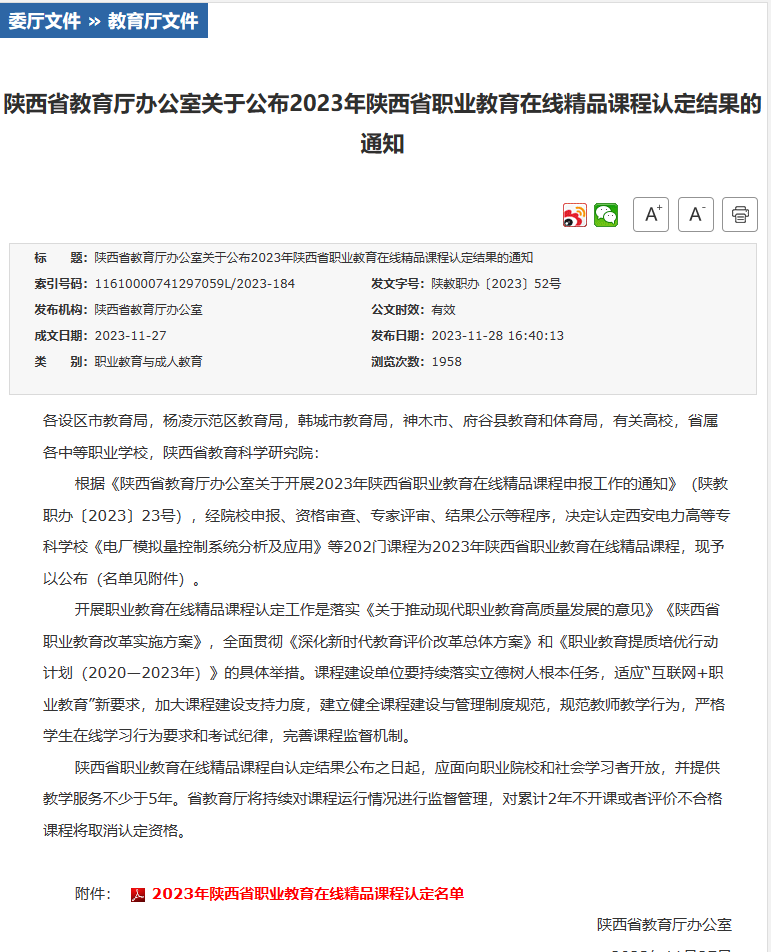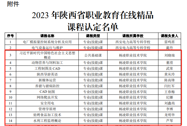 11月28日,省教育厅发布2023年陕西省职业教育在线精品课程认定结果,我校刘晓瑞、董滢、武荣、黄从玲、陈高锋、闫红军、王春梅、纪娜、刘鑫尚、李博、龙明华和芦琴等12名老师负责的课程获评,认定总数和比例均居全省高职院校前列。