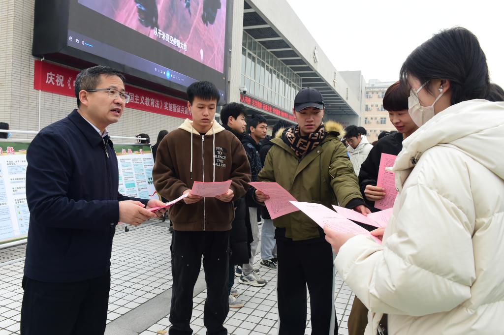 12月29日上午,学校举行庆祝爱国主义教育法实施暨征兵宣传签名活动。副校长张朝晖出席活动。