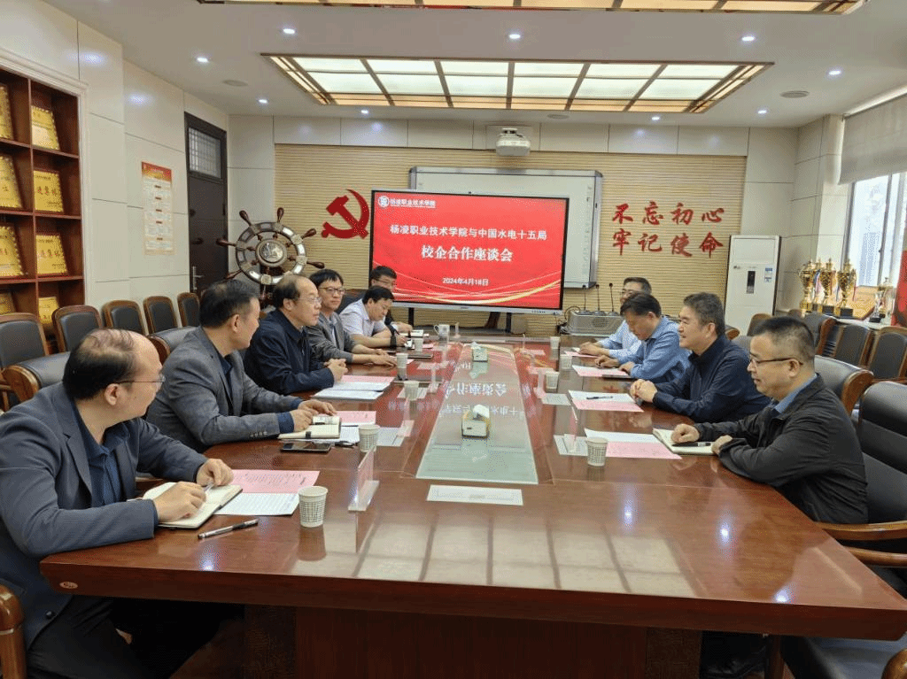 4月18日上午,中国水电十五局党委副书记邵军一行来校洽谈校企合作。校长仲伟周参与座谈会。