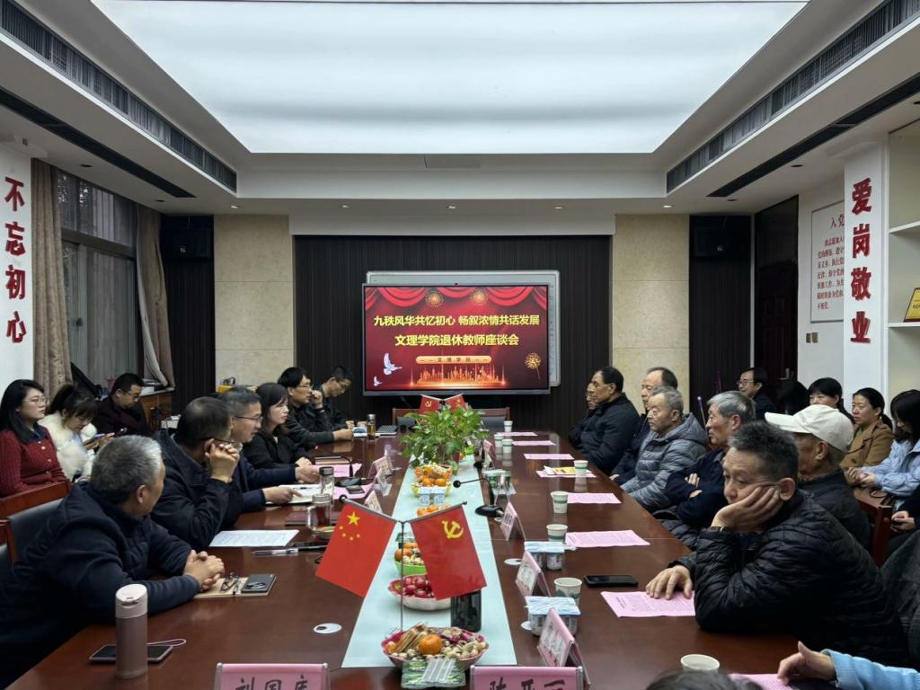11月18日下午,文理学院举行“九秩风华共忆初心•畅叙浓情共话发展”退休教师代表座谈会。副校长张朝晖出席会议并讲话。文理学院负责人,退休教师代表和教职工代表参加会议。