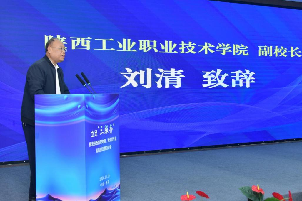 刘清代表陕西省职教学会电子商务、物流类专业教学指导委员会致辞,他指出,陕西省教指委积极发挥桥梁纽带作用,有力促进院校和行业、企业交流合作,在教育教学改革中取得了显著成果,将以办学能力高水平、产教融合高质量为目标,以全面深化产教融合、校企合作为关键,以提升育人质量和社会服务能力为核心,推动电商物流类专业办学与国家战略布局相结合、与重点产业需求相结合、与地方经济社会发展相结合、与促进人的全面发展相结合,为适应陕西现代化产业体系建设需要、培育壮大新质生产力和实现中国式现代化贡献力量。
