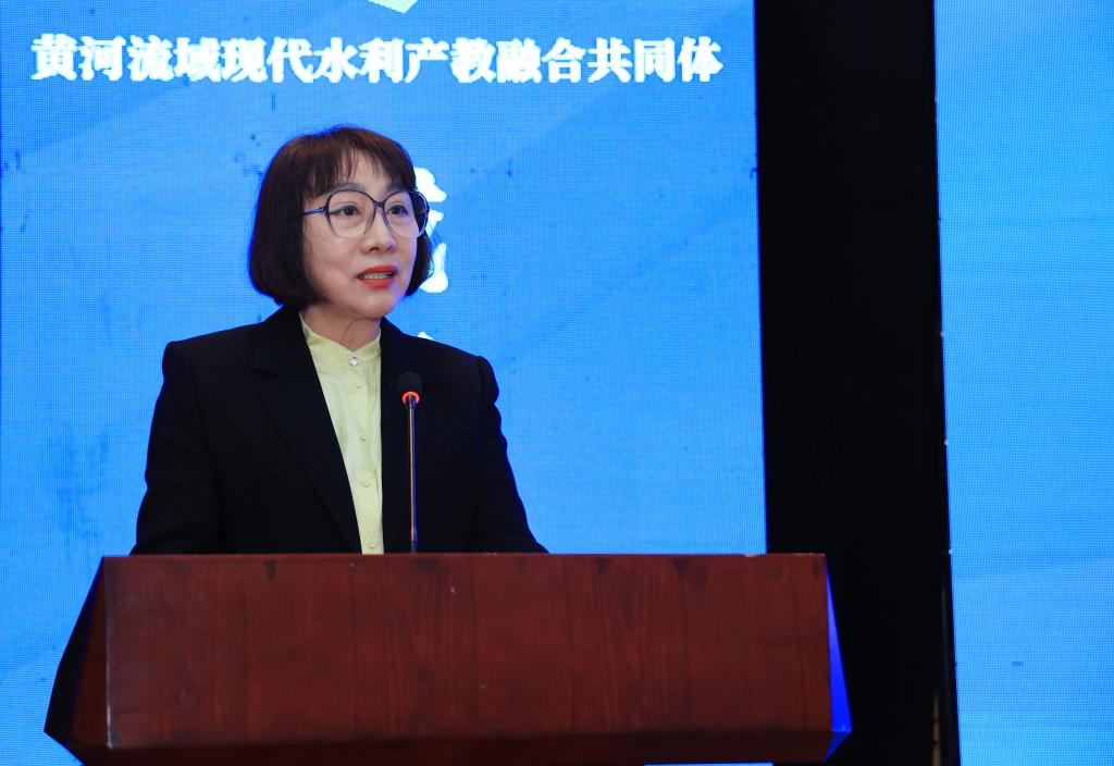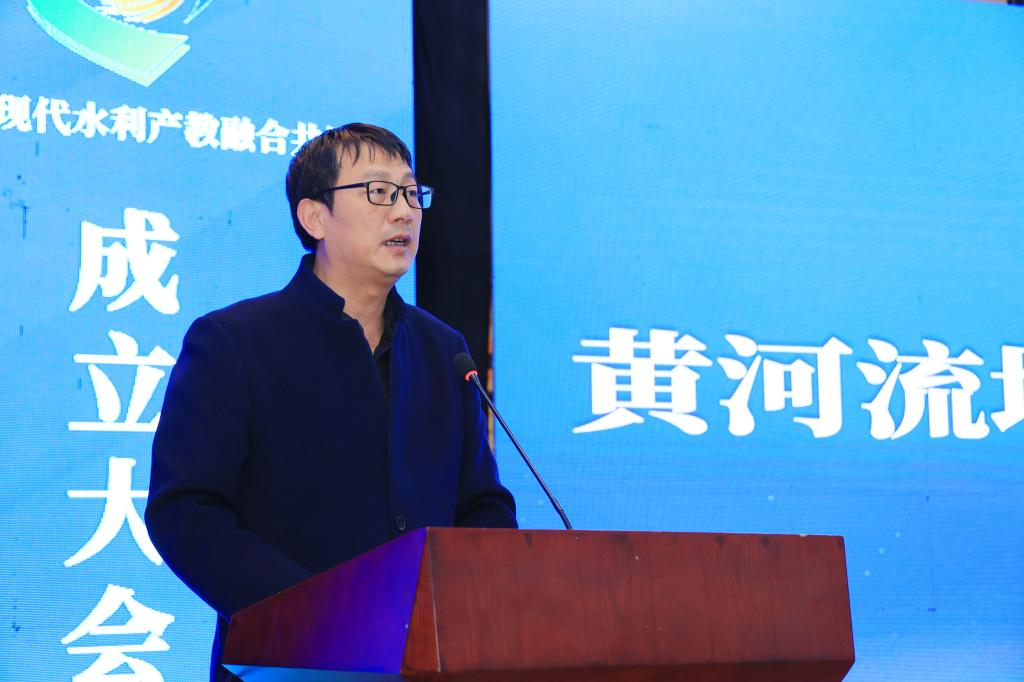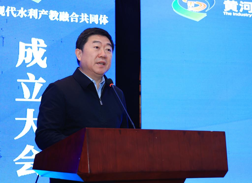 张斌成代表陕西省水利厅致辞,他对黄河流域现代水利产教融合共同体的未来发展提出了三点希望,一是希望共同体能够成为水利创新与人才培养的高地;二是希望共同体能够成为水利教育与产业融合发展的典范;三是希望共同体能够成为传承黄河文化、弘扬水利精神的重要载体。