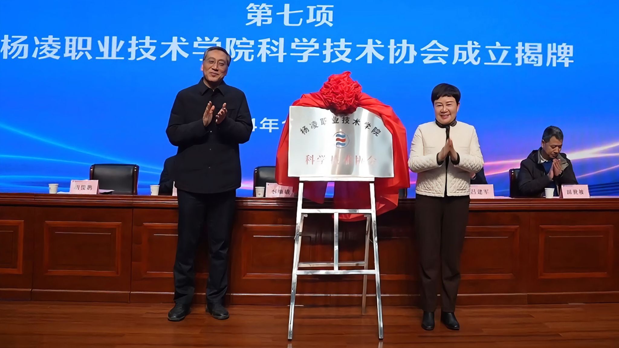 李肇娥和韩明军共同为杨凌职业技术学院科学技术协会揭牌