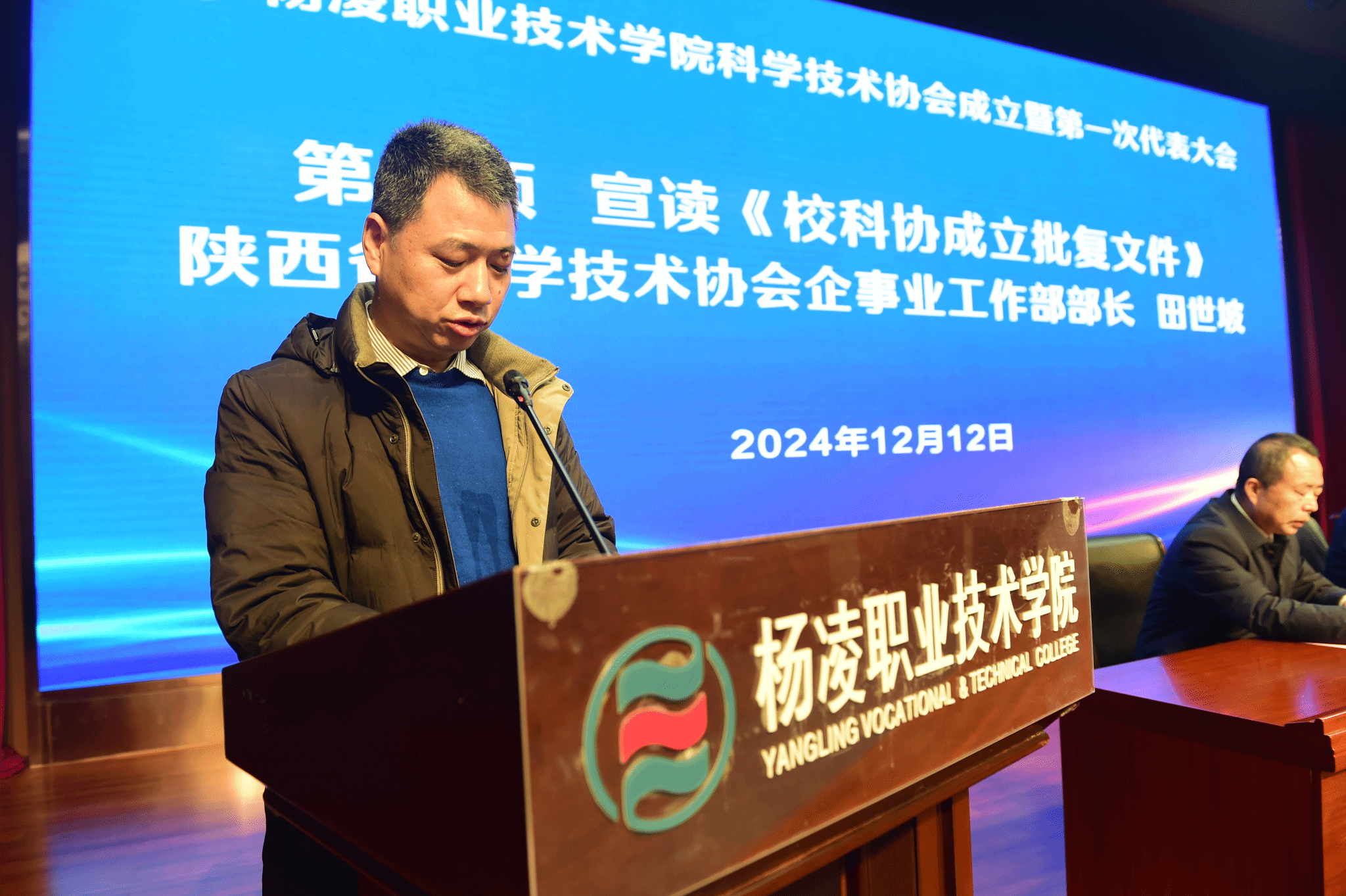 12月12日下午,学校召开科学技术协会成立暨第一次会员代表大会。陕西省科学技术协会常务副主席李肇娥,党组成员、副主席吕建军,企事业工作部部长田世坡,我校党委书记韩明军、校长仲伟周出席会议。校科学技术协会会员代表150余人参加会议。会议由副校长胡俊鹏主持。