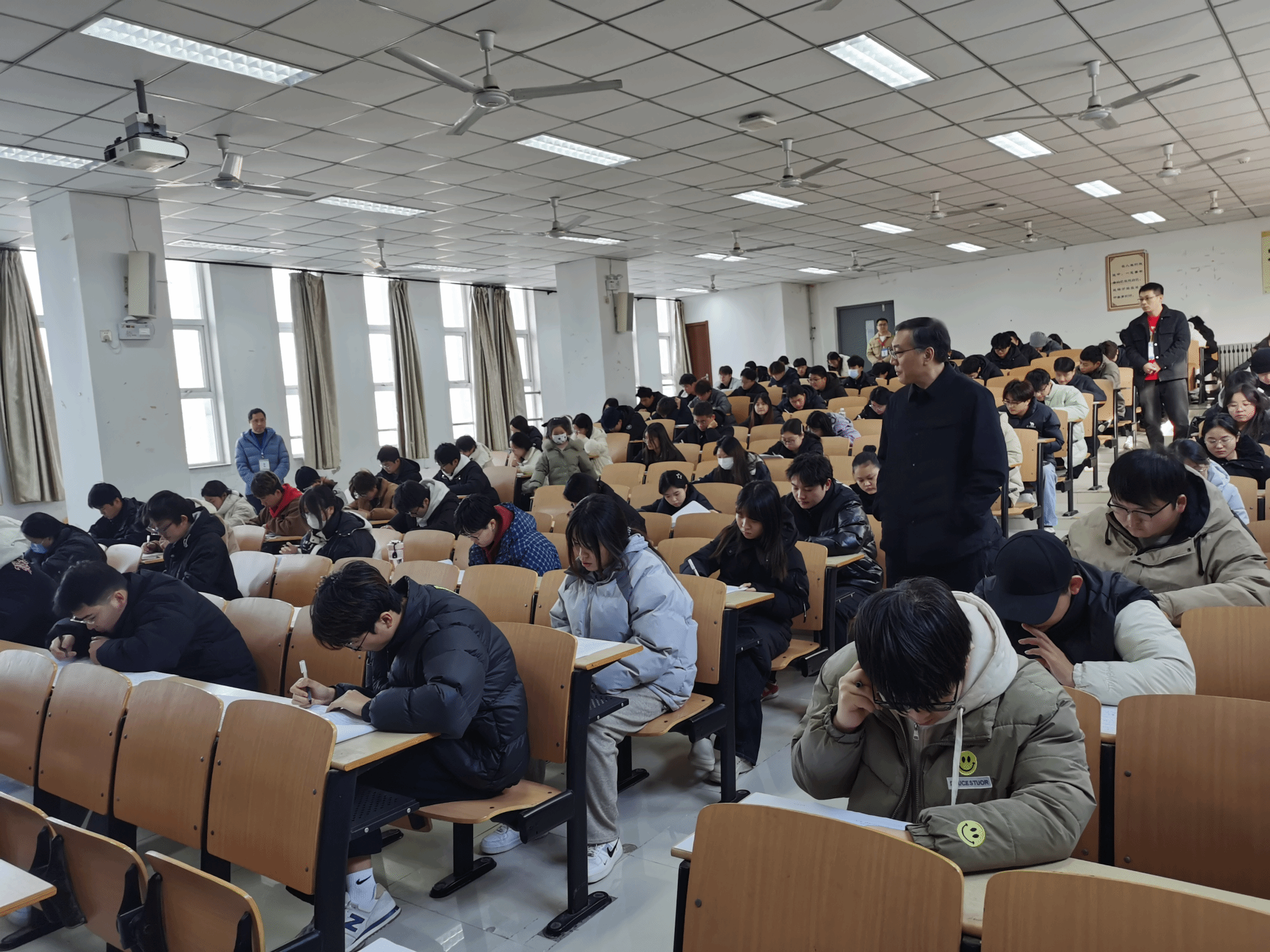 1月6日至8日,学校举行2024-2025学年第一学期期末考试。本次考试共安排场次1120个,参加考试学生28000余人次,投入监考教师2240人次。党委书记韩明军深入考场巡查指导期末考试工作,对考试安排的合理性、考场布置的规范性、考风考纪的严肃性、试卷命题的科学性和监考教师履职情况等进行了检查,对发现的问题当场指出、当场反馈,并就整改落实提出明确意见。