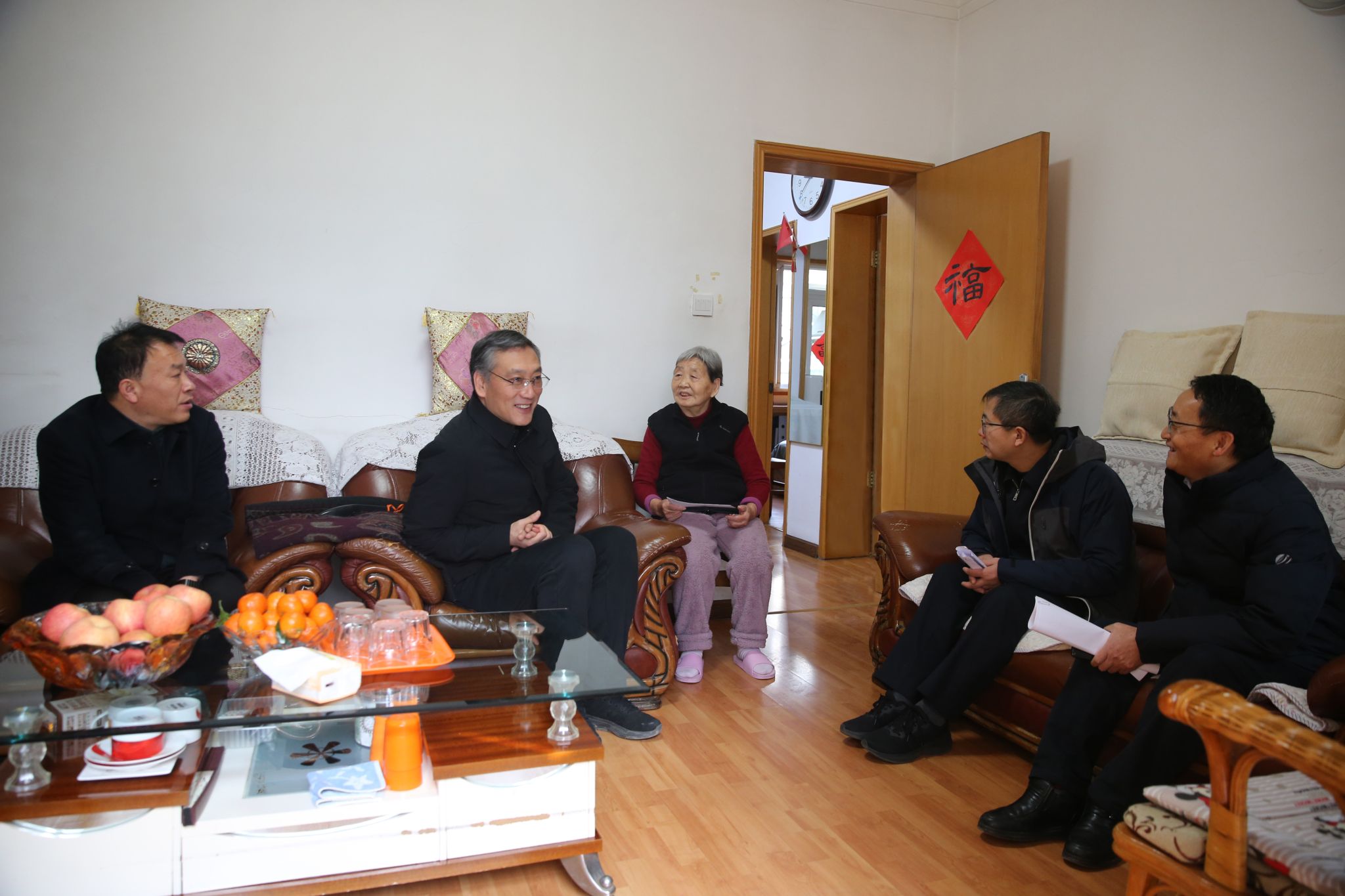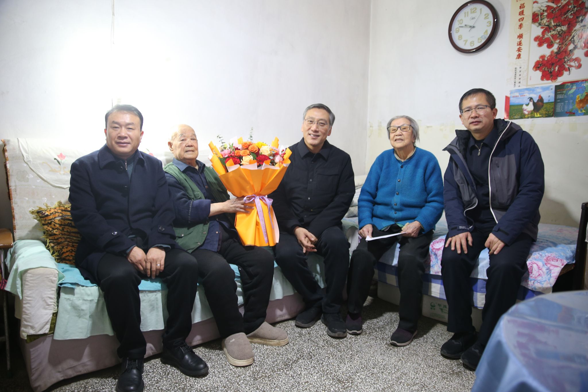 在老同志家里,校领导与离退休老同志亲切交谈、嘘寒问暖,关切地询问他们的身体情况、生活近况和家庭情况,认真听取了他们对学校发展的意见建议,高度评价了老一辈教育工作者为学校教育事业发展所做出的卓越贡献,表示正是有了他们的辛勤耕耘与无私奉献,才奠定了学校坚实的发展基础,成就了今日的辉煌成就,希望离退休老同志保重身体,继续关心和支持学校的改革与发展,为学校的美好未来建言献策。强调要一如既往地做好离退休老同志的服务保障工作,在政治上多关心,思想上多沟通,生活上多关照,精神上多关怀;要发挥好老同志的政治优势、经验优势和威望优势,助力学校事业高质量发展;要不折不扣的落实好老同志的各项福利待遇,让他们心情舒畅地安享晚年、颐养天年。