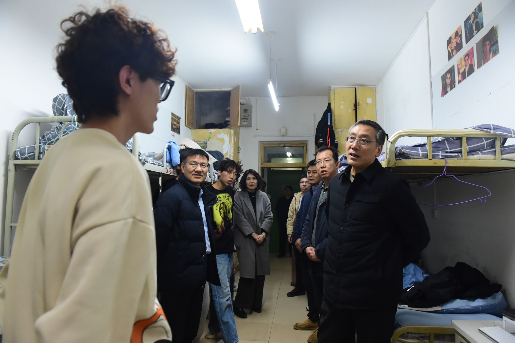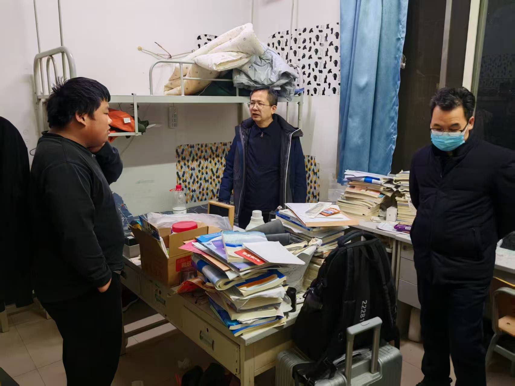 晚上,校领导分别带队深入三校区学生公寓看望返校学生,与学生们亲切交谈,询问他们的假期生活和返校后的适应情况,了解他们的生活情况和需求,并叮嘱他们注意安全,合理安排学习和生活,以饱满的精神状态迎接新学期。