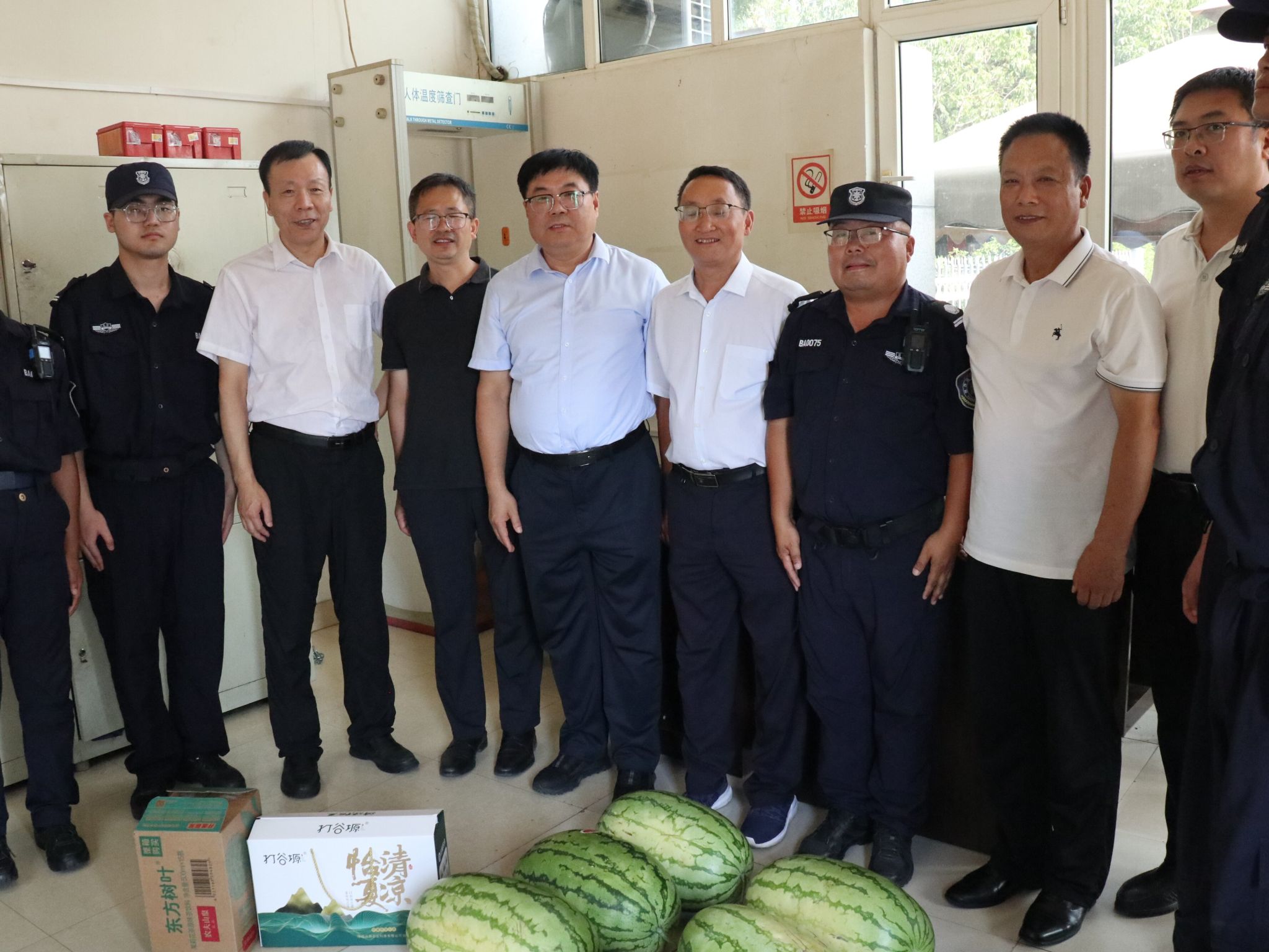 热浪滚滚,清凉守护。7月15日,学校开展了2025年“夏送清凉”慰问活动。校党委副书记刘瑞明带队,看望慰问在高温酷暑下仍坚守在一线岗位的教学科研、保卫、后勤、基建等岗位的教职工,副校长胡俊鹏、副校长张朝晖一同慰问了有室外作业的分管部门,为他们送去清凉物品与真诚问候。
