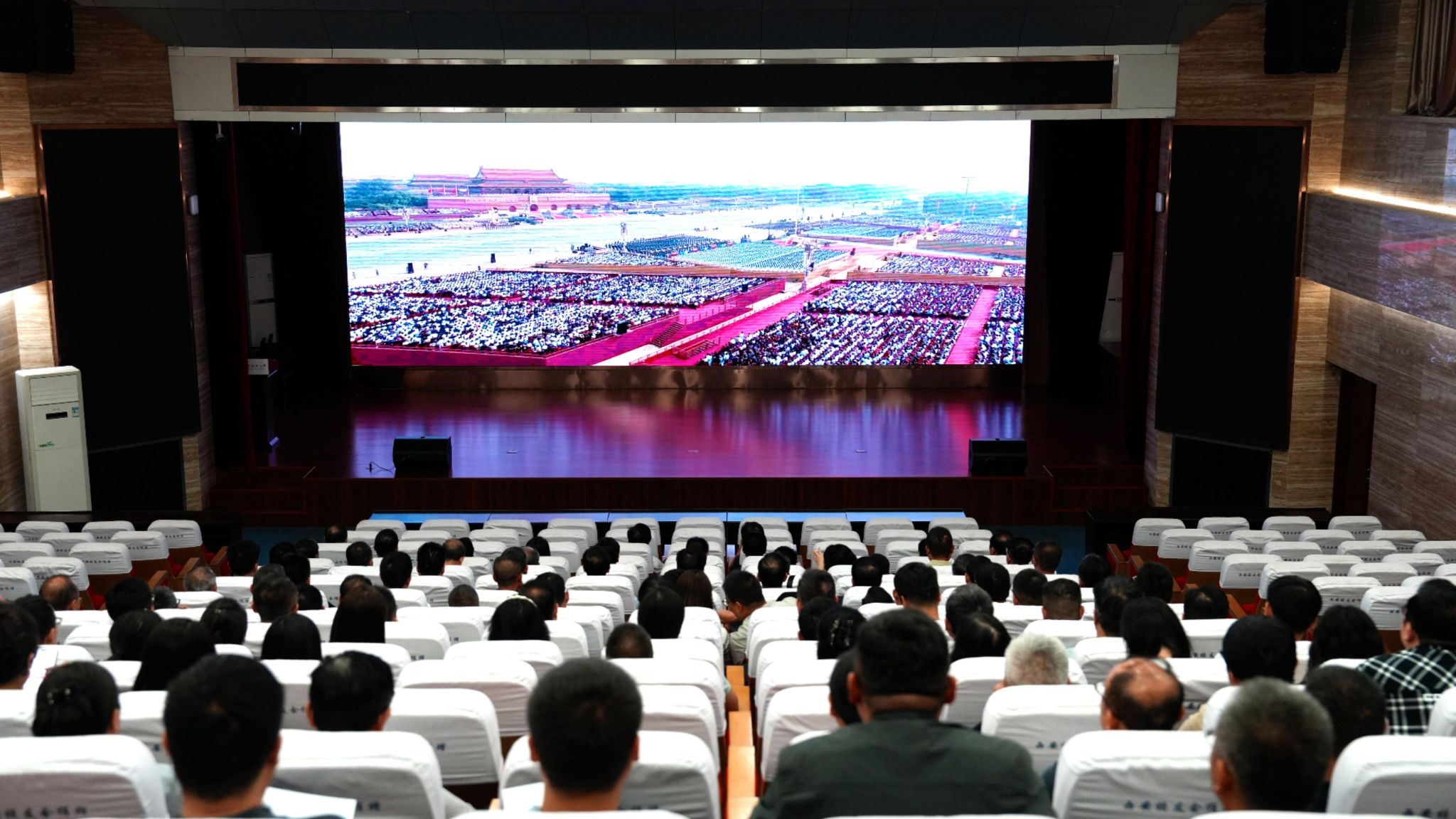 处科级干部在南校区思辩堂集体收看阅兵仪式