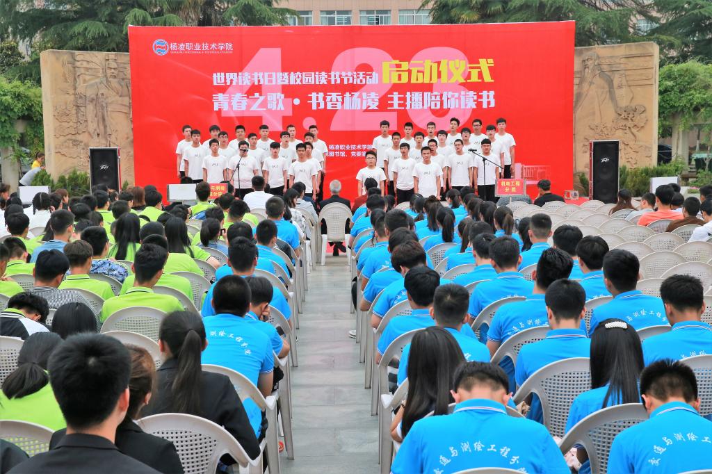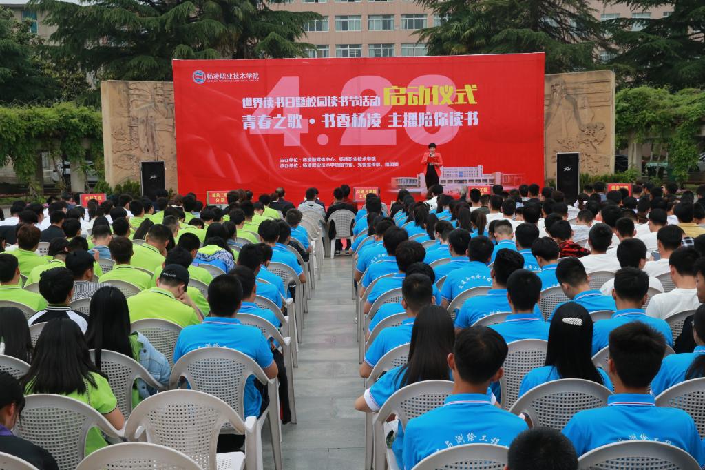 花开阅读季,正是读书时。4月22日下午,世界读书日暨校园读书节活动启动仪式、“青春之歌·书香杨凌”主播陪你读书活动在杨凌职业技术学院南校区1934广场举行,杨凌融媒体中心的9位知名主播全体走进学院,与师生共享诵读的快乐,畅想青春之歌。