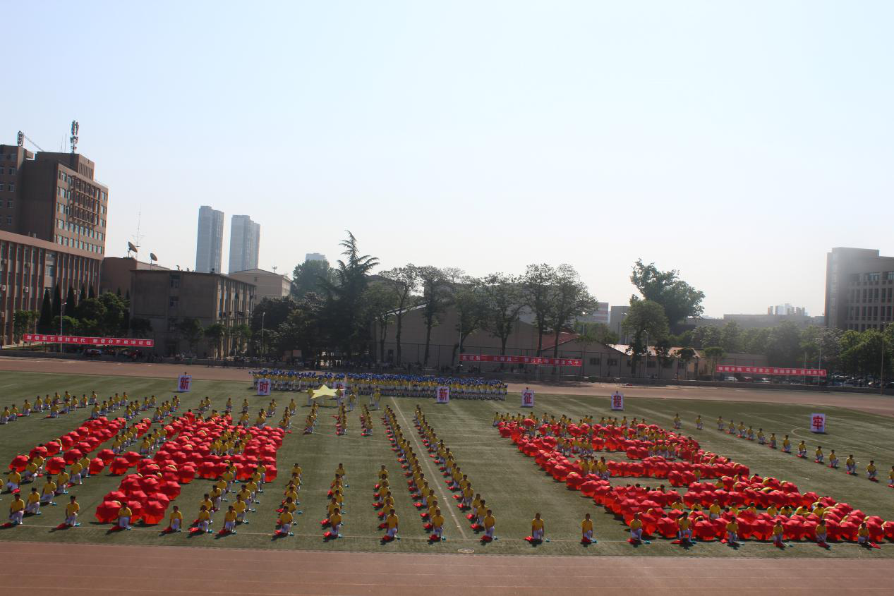 今年是学院建校85周年暨合校建院20周年,又即将迎来祖国的70岁华诞。在这个特殊的年份,由体育部组织编排、信息工程分院,水利工程分院等千余名学生表演的大型团体操《祝福祖国》在开幕式上大放异彩。团体操分为校庆篇·奋斗与荣耀,体育篇·健身与健康,国庆篇·祝福祖国三个篇章,千余名学生踏着音乐的节拍,不断变换造型,用活波动感的舞步,组合出1999,2019,20,中国,五星红旗等造型,展示了杨职人20年的不懈奋斗,同时向伟大的祖国献礼。