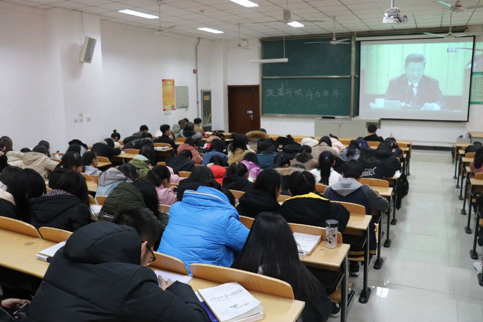 经济贸易分院师生收看庆祝改革开放40周年大会