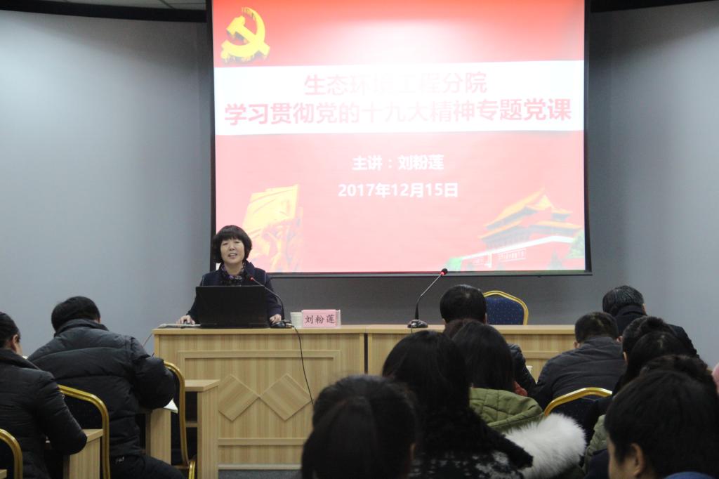 12月15日,学院纪委书记刘粉莲以“不忘初心,方得始终”为题,为生态环境工程分院全体教职工和发展对象讲专题党课。