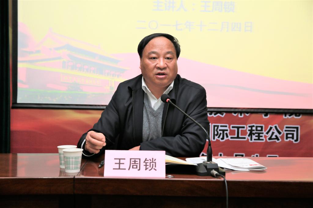 讲课中,王周锁紧紧围绕习近平新时代中国特色社会主义思想这个主线,对党的十九大提出的新思想、新论断、新要求、新任务作了全面系统的深入解读,着重讲解了习近平新时代中国特色社会主义思想和基本方略、中国特色社会主义进入新时代、“两个一百年”奋斗目标的战略部署、坚定不移推进全面从严治党的重要内容和重大意义。