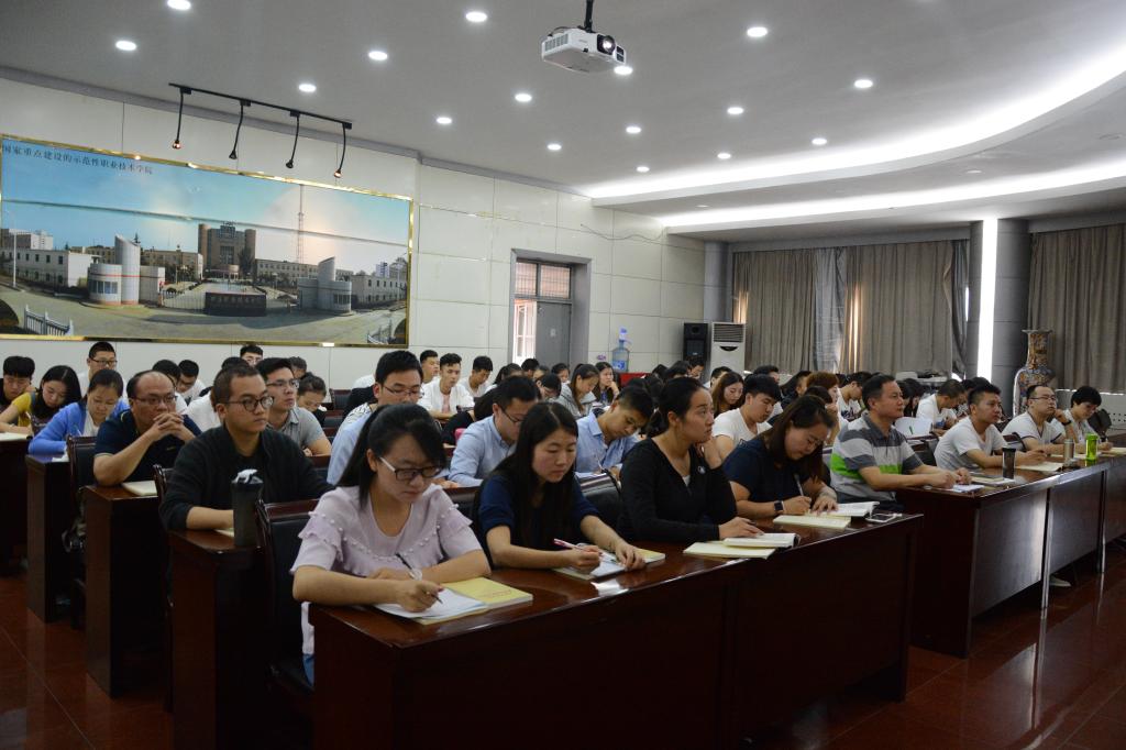 9月18日下午,学院党委副书记、院长王周锁在水韵楼二楼报告厅为建筑工程分院全体师生党员讲“两学一做”学习教育专题党课。建筑工程分院师生党员97余人参加了党课学习。