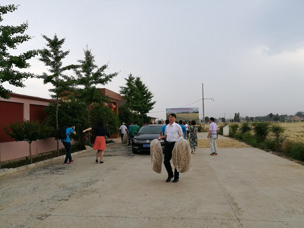 学习活动结束后,董小龙在王周锁和赵瑜的陪同下,参观了赵瑜的试验田,实地了解赵瑜小麦育种的情况。参观途中,突然天上下起了大雨,董小龙、王周锁冒着大雨,和大家一起,帮赵瑜把晒在外面的小麦收回仓库。