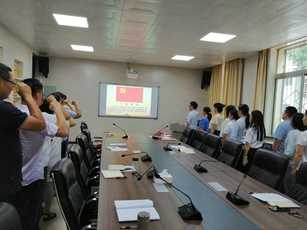 会上,全体党员佩戴党徽,面对党旗,重温入党誓词,庆祝党的生日。铿锵的誓词,字字千钧,坚定有力,激发了党员干部不忘初心、牢记使命,矢志不渝、永葆党员本色的决心,提升了党员干部“人民的利益高于一切的理想信念”。