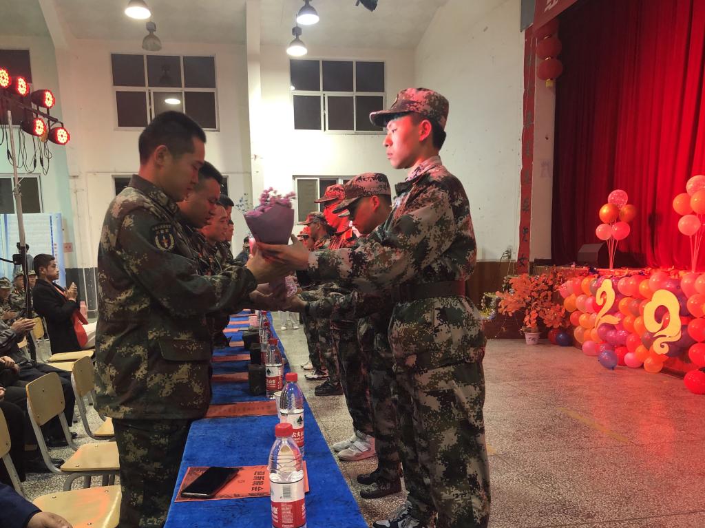 10月25日晚,经济与贸易分院“致敬青春”2020年迎新生暨军民联谊歌舞晚在北校区体育馆举行。分院党总支书记李嘉鸣、副院长杨宏祥,军训十营全体教官及2020级新生共同观看了演出。