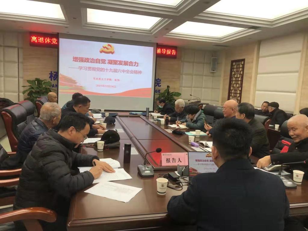 为切实做好学校离退休党员和干部学习贯彻党的十九届六中全会精神工作,12月14日下午,离退休党总支在南校区204会议室举行学习贯彻党的十九届六中全会精神报告会,马克思主义学院副院长张伟作题为《增强政治自觉 凝聚发展合力》专题报告。离退休党总支委员、各党支部书记、各党支部委员及党员和干部代表聆听了报告。