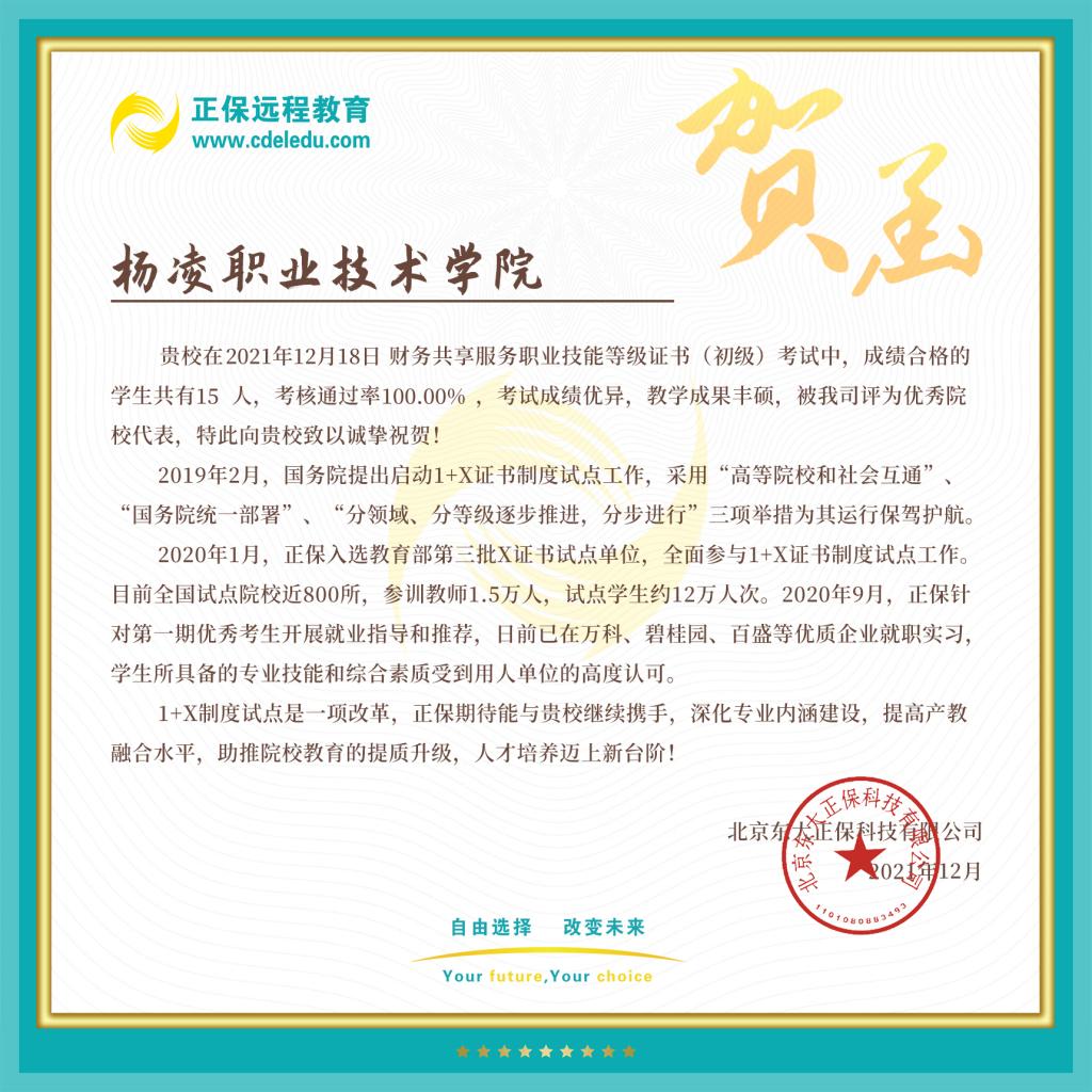 为贯彻落实《国家职业教育改革实施方案》精神和教育部“1+X”证书制度,12月18日,经济与贸易学院联合北京东大正保科技有限公司开展1+X财务共享服务职业技能等级证书(初级)考试,学院15名考生全部顺利过关,考核通过率100%。