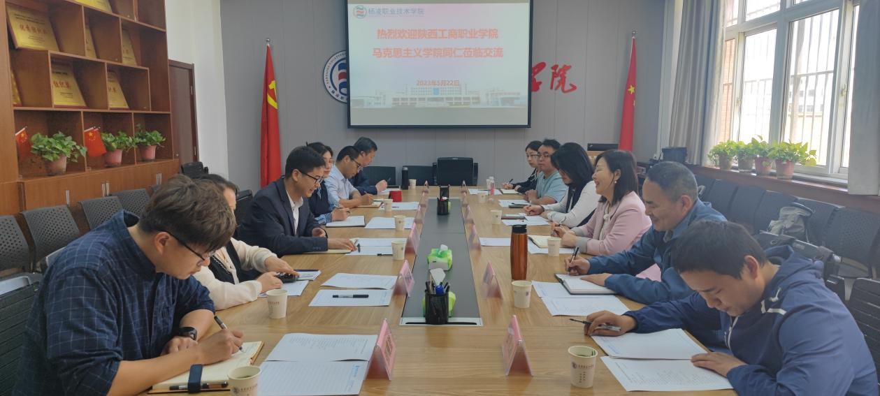张宝婧介绍了陕西工商职业学院和马克思主义学院的基本情况,说明了本次调研的目的和具体内容。张中世介绍了我校的办学特色、发展形势和马克思主义学院的发展历程、机构设置、师资队伍等。随后,双方围绕省级重点马院培育单位建设、思政课实践教学改革、思政课程考核、集体备课、虚拟仿真中心和标杆支部建设情况等方面进行了讨论,课程负责人一对一进行了交流。大家一致认为,此次交流为两院建立了良好的关系,希望能进一步积极互访、增进友谊、加强交流,共同推进省级重点马院培育单位建设。