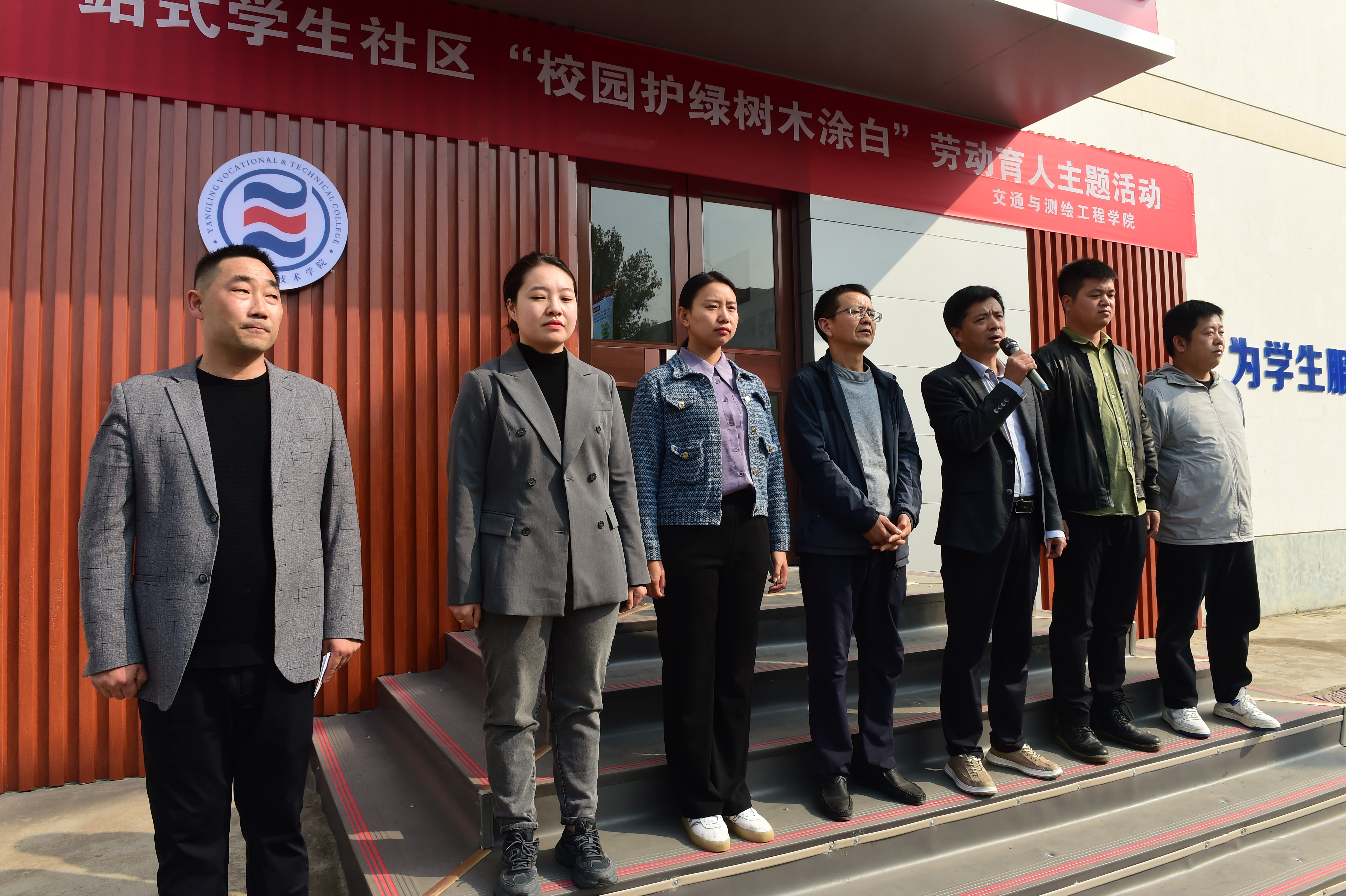 10月27日下午,交通与测绘工程学院开展“校园护绿,树木涂白”劳动育人主题活动。副校长张朝晖出席活动,党委学工部、后勤保障处、交通与测绘工程学院、陕西垚森园林景观有限公司相关人员及80余名学生参加了此次活动。