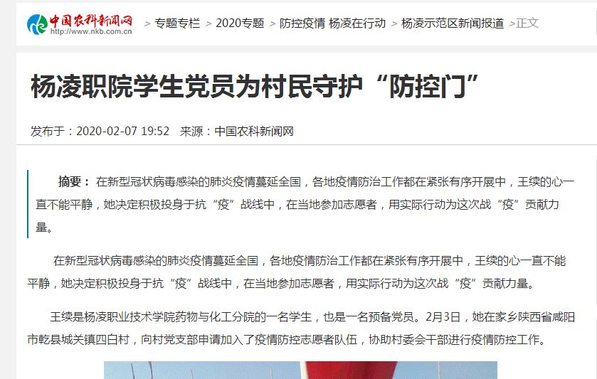 【中国农科新闻网】杨凌职院学生党员为村民守护“防控门”