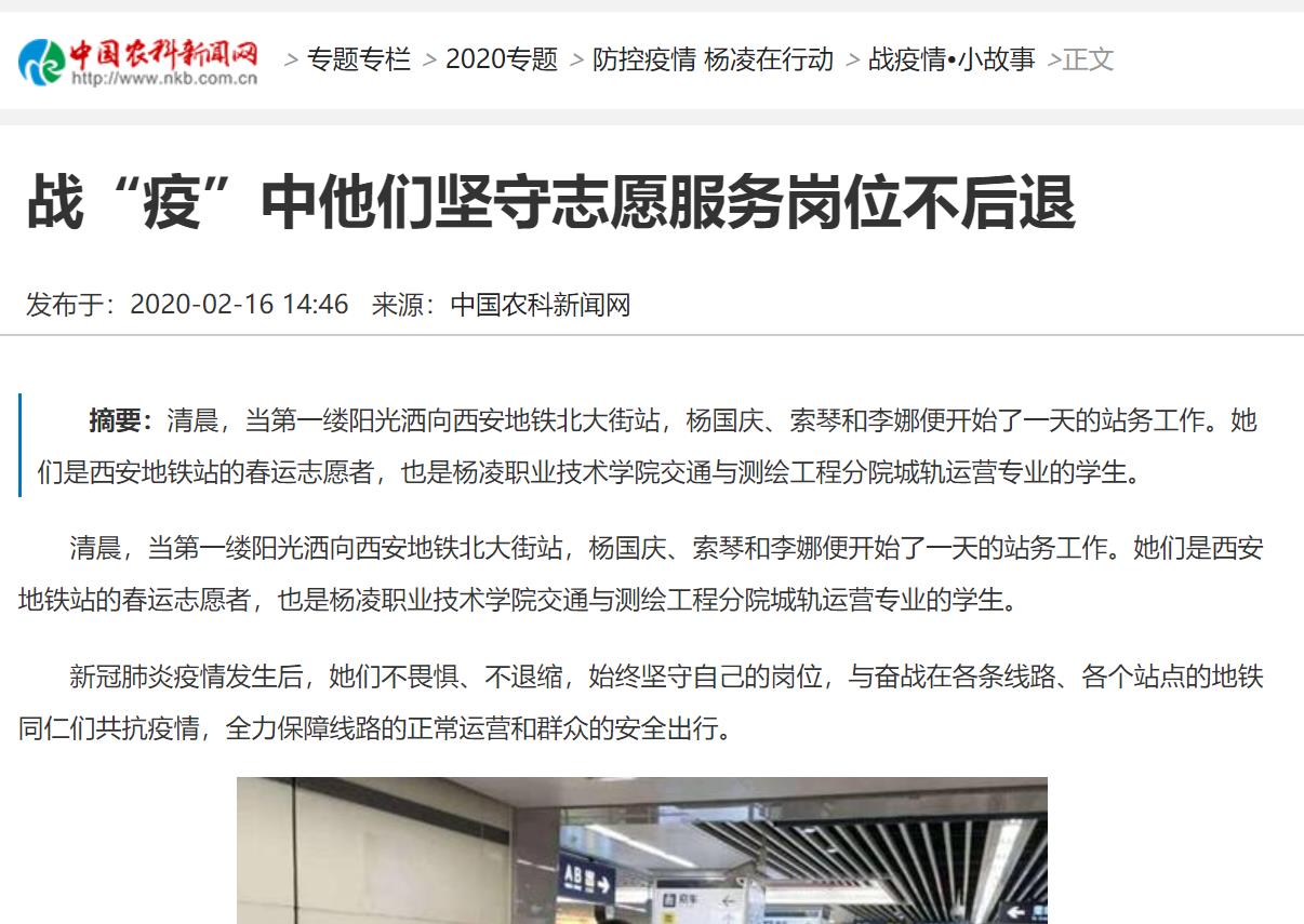 寒假前夕,杨凌职业技术学院校企合作单位——西安中保轨道交通部来校招募2020年春运志愿者,杨国庆、索琴、李娜和其他11名同学踊跃报名,在学校进行了两天的培训后,1月10日前往公司办理顶岗实习手续,并于1月12日正式在地铁站内上岗工作。